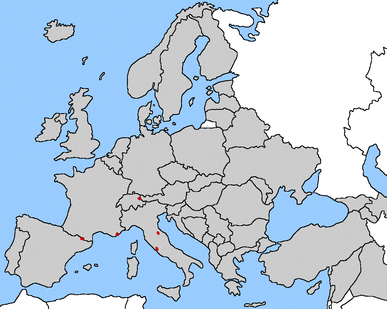 Better get studying! There are a total of 51 countries that need to be known in the below map, which includes the five micro-nations that are dotted in red and the nations that are highlighted gray.